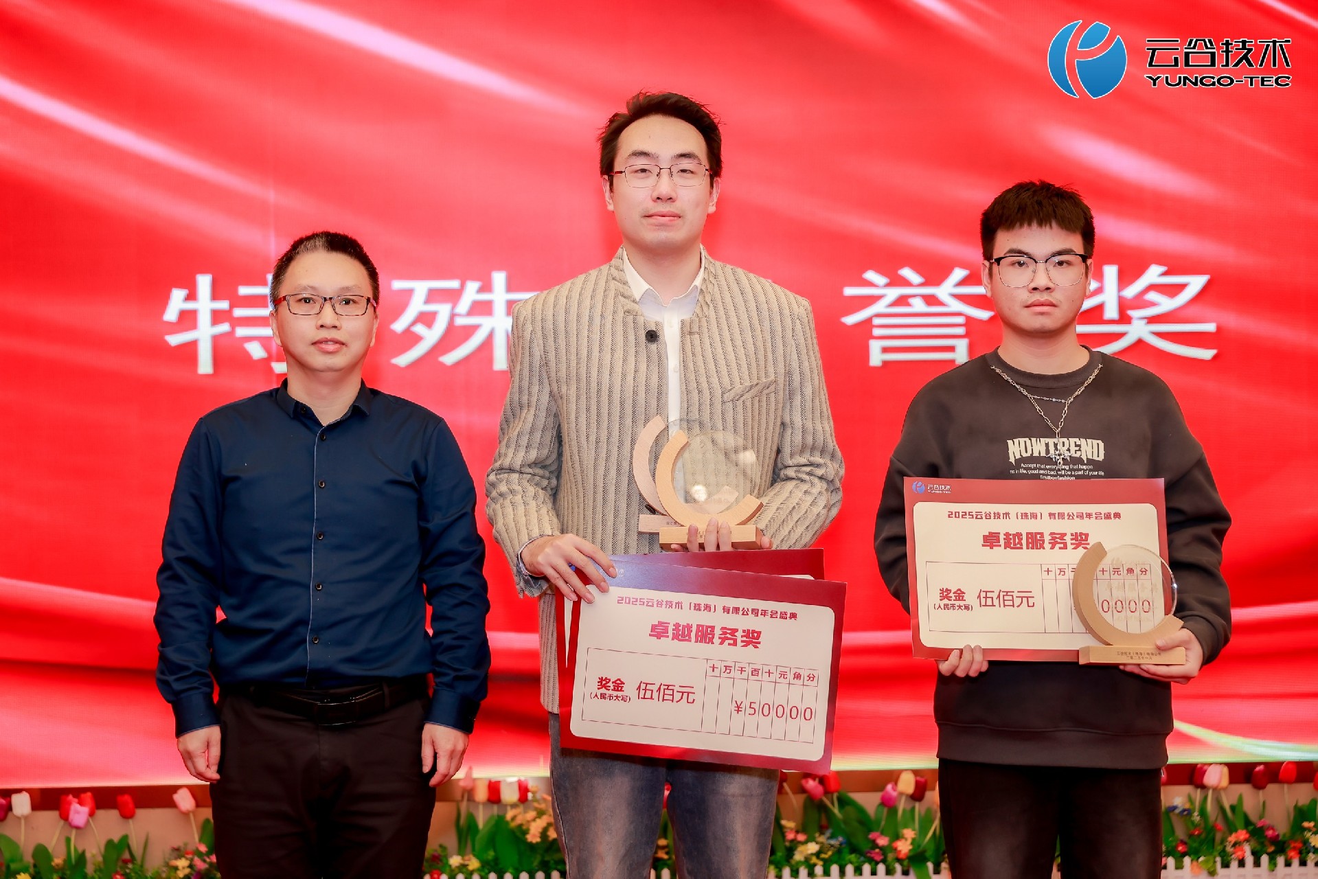 在2024年的征途中,云谷大家庭中涌现出了一批批在各自岗位上熠熠生辉的璀璨之星。为表彰他们的卓越贡献与非凡成就,公司特此设立了多项荣誉奖项:**新员工奖、**员工奖、**团队、**主管以及特殊荣誉奖。以各自岗位上的默默付出和卓越贡献铸就了公司的非凡成就,在此向他们致以诚挚的感谢!